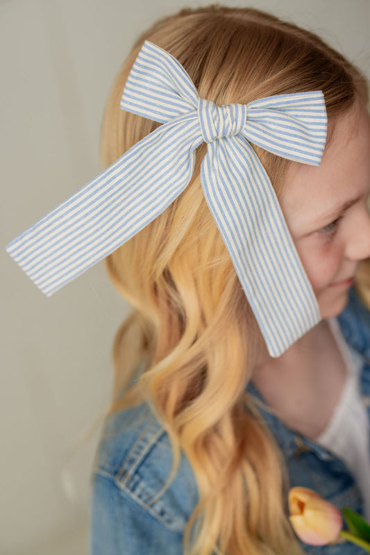 Levi Stripe Long Tail Hair Bow Clip