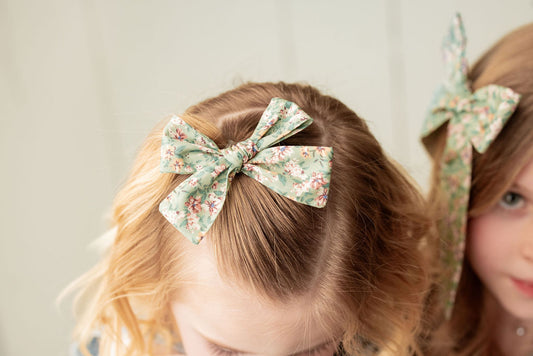 Green Floral Mini Long Tail Hair Bow Clip